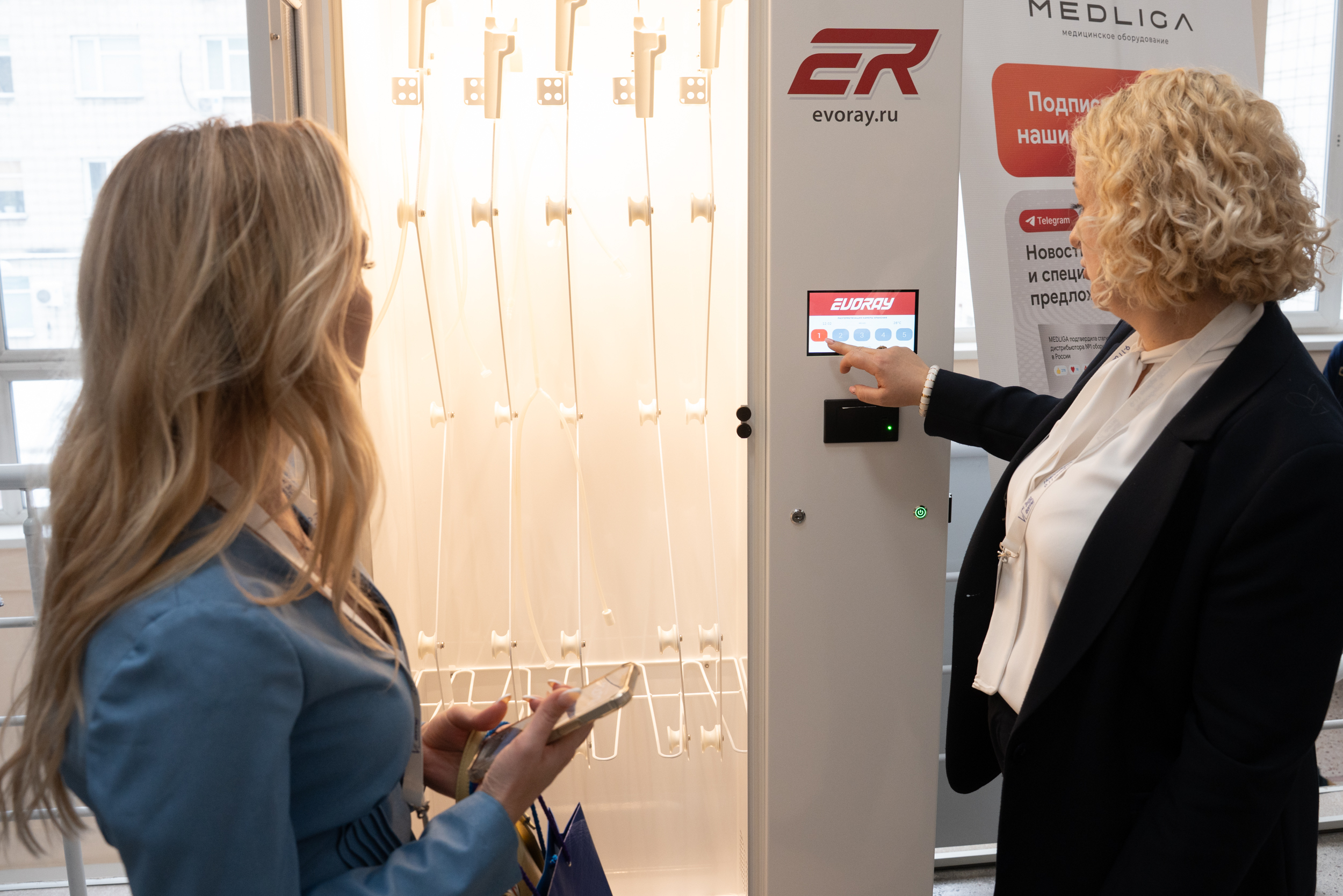 Компания MEDLIGA представила собственные решения для эндоскопических отделений, включая российскую разработку — шкаф EVORAY для сушки и хранения гибких эндоскопов. Оборудование, созданное с инженерной точностью, вызвало большой интерес у врачей: безопасное хранение инструментов — вопрос, который закреплён на законодательном уровне и волнует каждого эндоскописта.