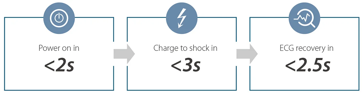- Технология QShockTM обеспечивает чрезвычайно быструю дефибрилляцию, ведь на счету каждая секунда.
