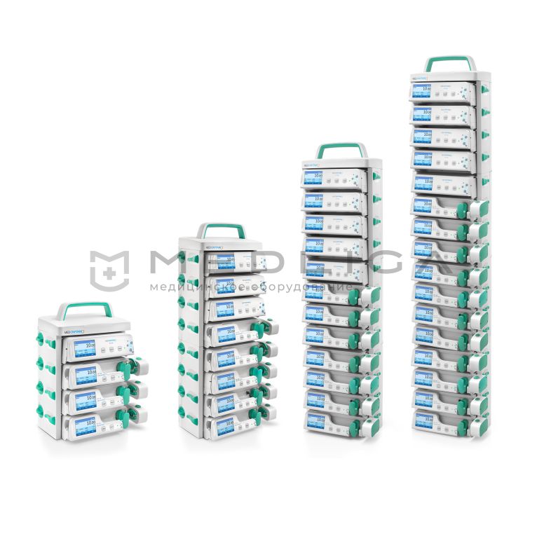 • Возможно создать 2/3/4/8/12-канальный шприцевой насос, 2/3/4/8/12-канальный инфузионный насос или комбинированный шприцевый/инфузионный насос;