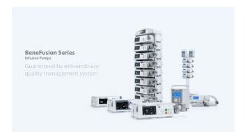 Аппарат Mindray BeneFusion SP1 – шприцевой насос с одним инфузионным режимом. Это компактная модель массой всего 1,8 килограмм с ручкой для переноски, которая может использоваться в машинах скорой помощи. Для передачи данных есть возможность подключения через Wi-Fi, а также к док-станции.