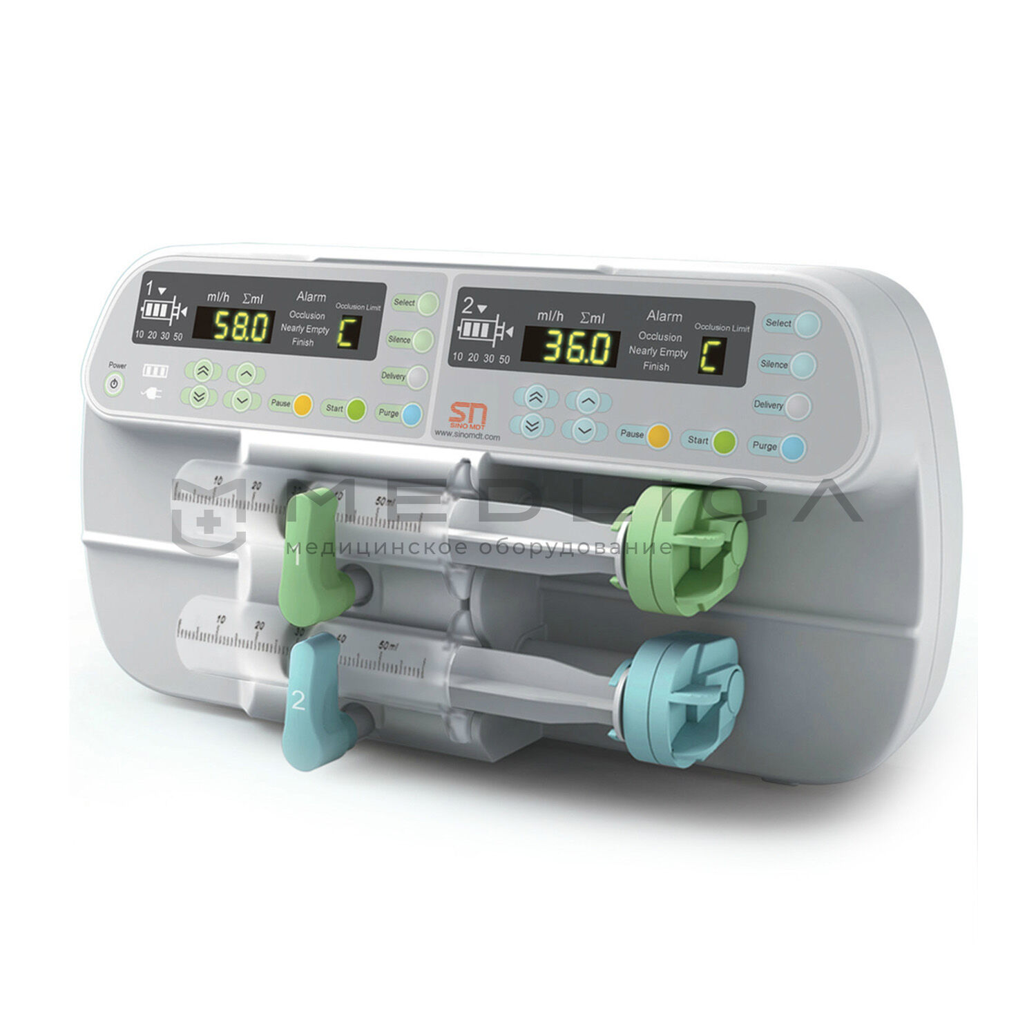 Низкая степень погрешности при введении любого лекарственного раствора и удобное применение обеспечили шприцевому насосу Sino SN-50F6 прекрасную репутацию. Эта компактная установка может работать в параллельном или автономном режиме, используя один или два канала в зависимости от ваших потребностей. Практичный зажим обеспечит надежную фиксацию прибора на инфузионной станции в любом нужном вам положении. Настройка основных параметров вливания и отслеживание работы системы на всех этапах проходит с помощью двойной панели управления с отдельными экранами, интегрированными в специализированный особо прочный пластиковый корпус.