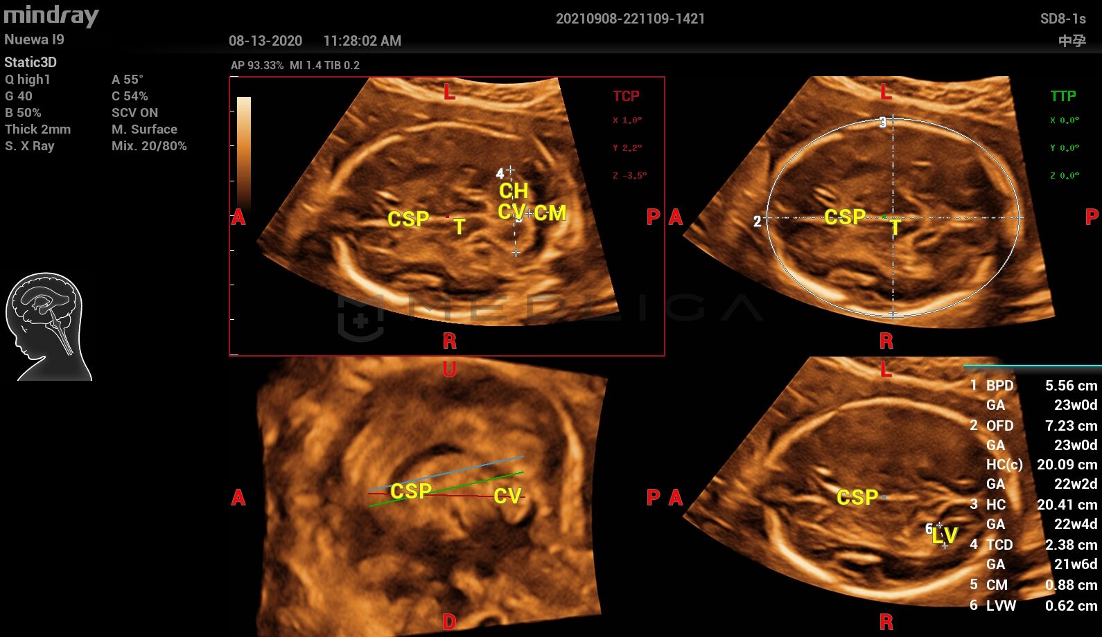 При нажатии на трехмерное изображение мозга плода незамедлительно будут получены