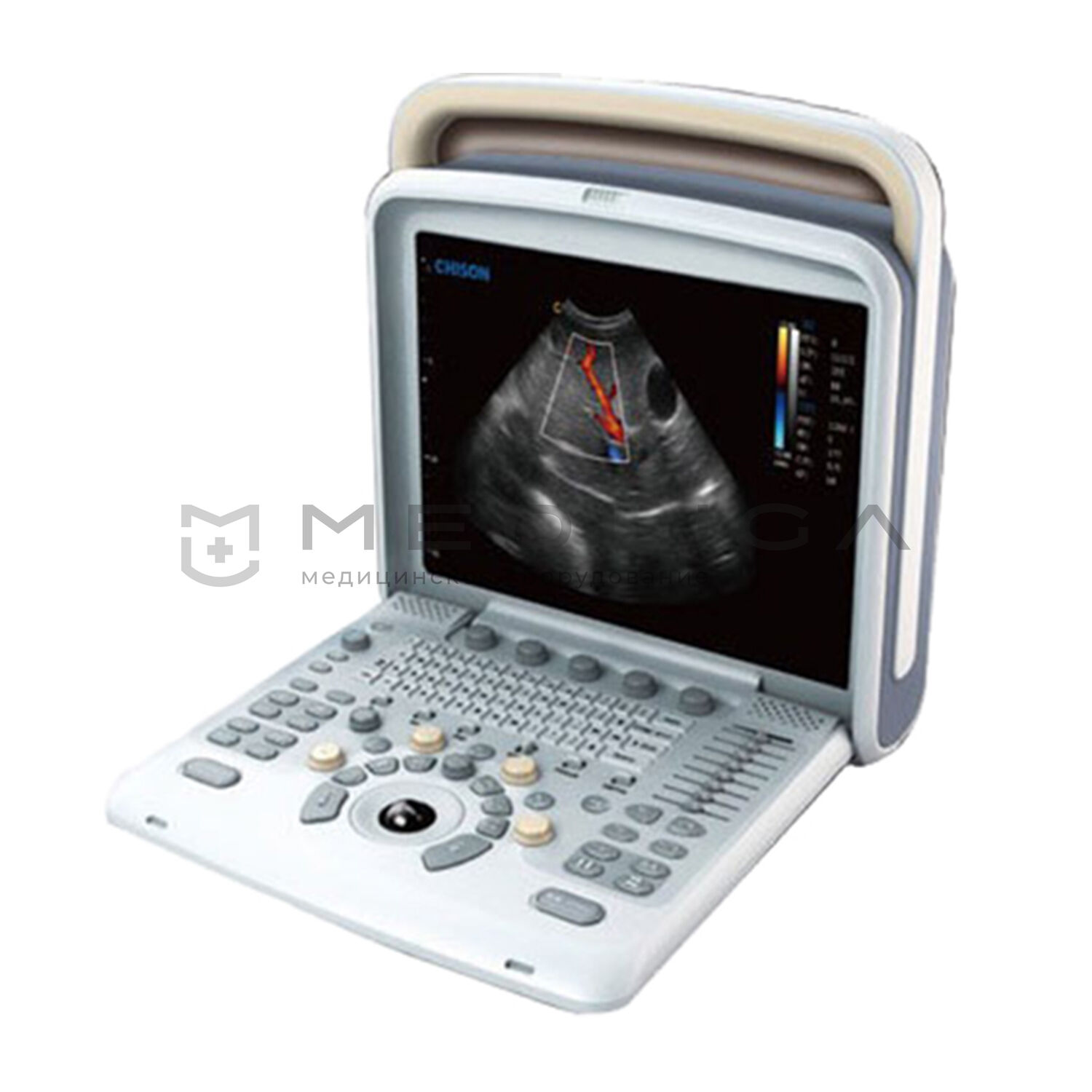 Компактный ультразвуковой сканер Chison Sonotouch 50 с ЖК монитором 12" и функцией расширения ультразвукового изображения на весь экран без полей.