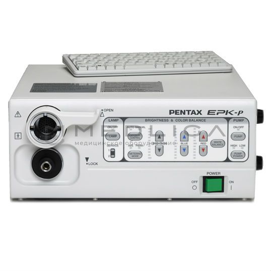 Видеопроцессор Pentax EPK-P прост и доступен в управлении и настройках, которые включают в себя видео и цифровой зум. В видеопроцессоре установлен системный интерфейс (USB) для сохранения неподвижных изображений на компьютер. Имеются стандартные видеовыходы и возможности обработки изображения. Программное обеспечение Endoimage способствует усилению контрастности и подавлению шумов. Освещение рабочей зоны происходит благодаря двойной 150Вт галогеновой лампе.