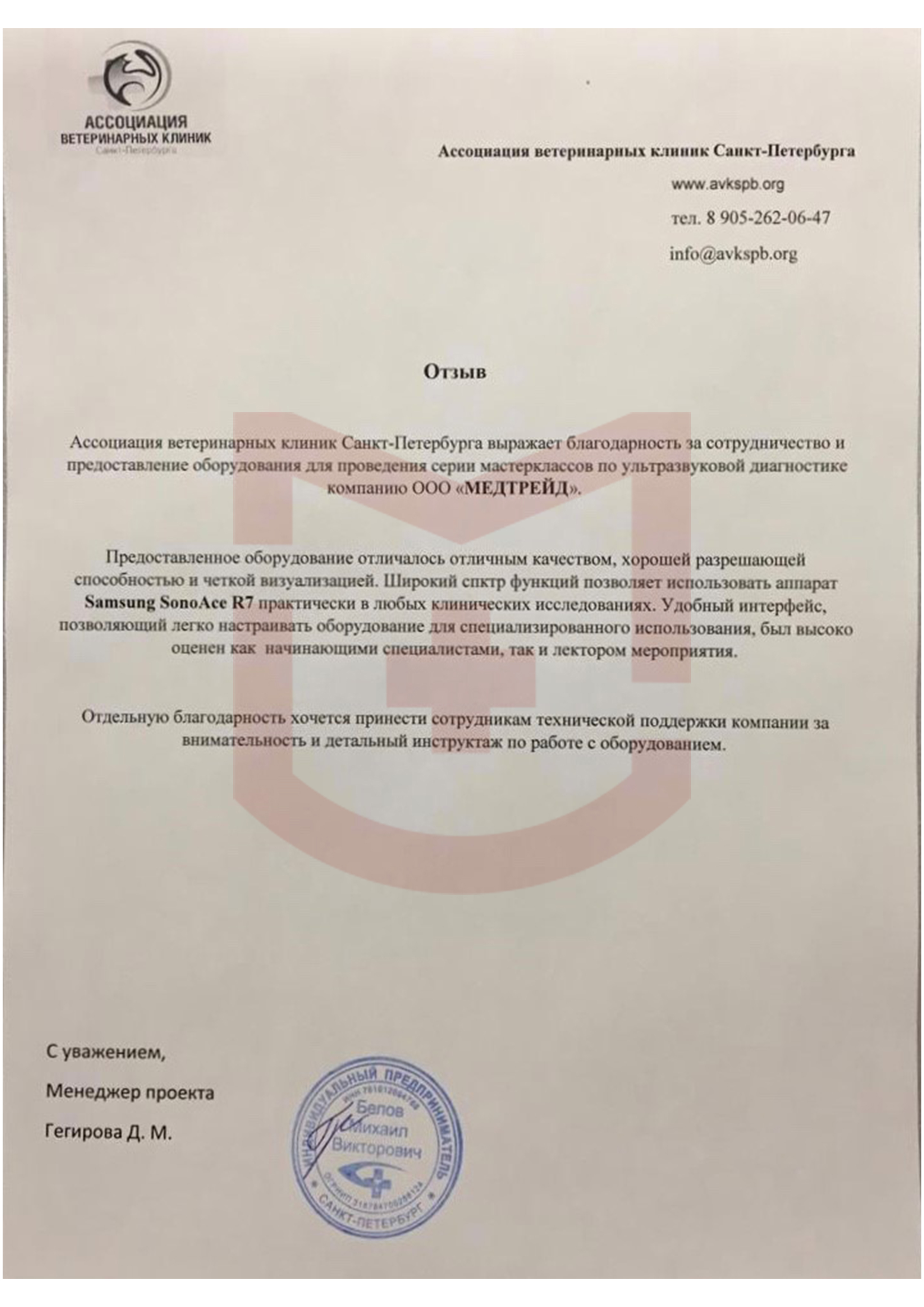 Отзыв от Ассоциации ветеринарных клиник